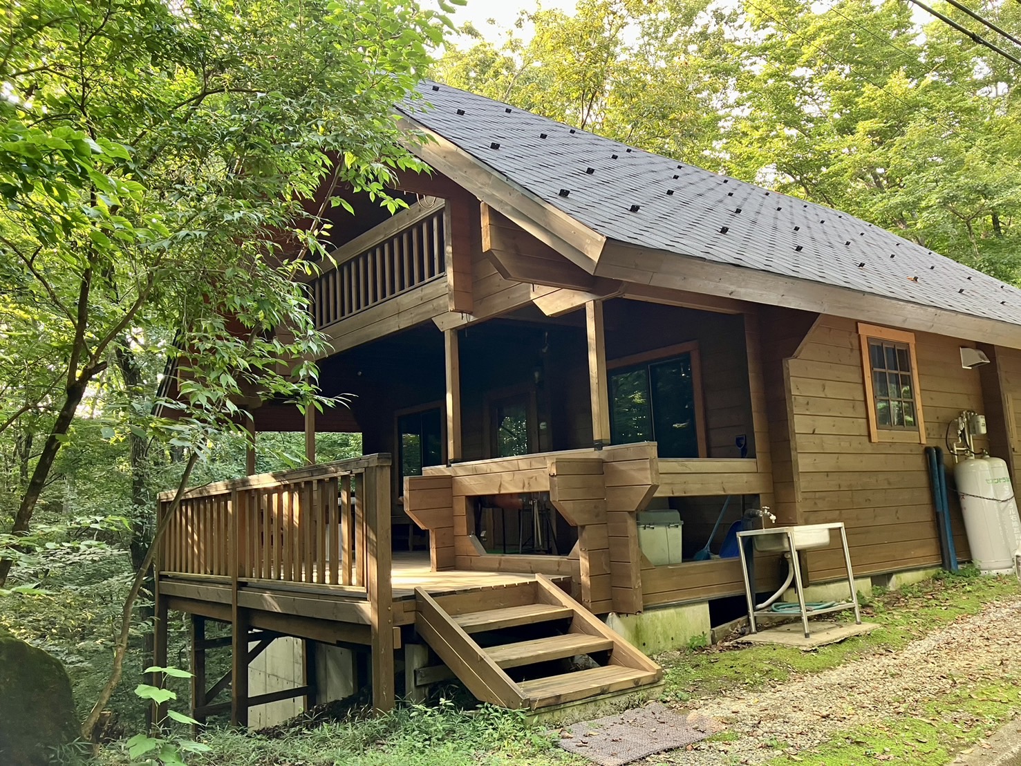 前面に4畳程のテラスが有り、森の中でのティータイムはいかがですか。