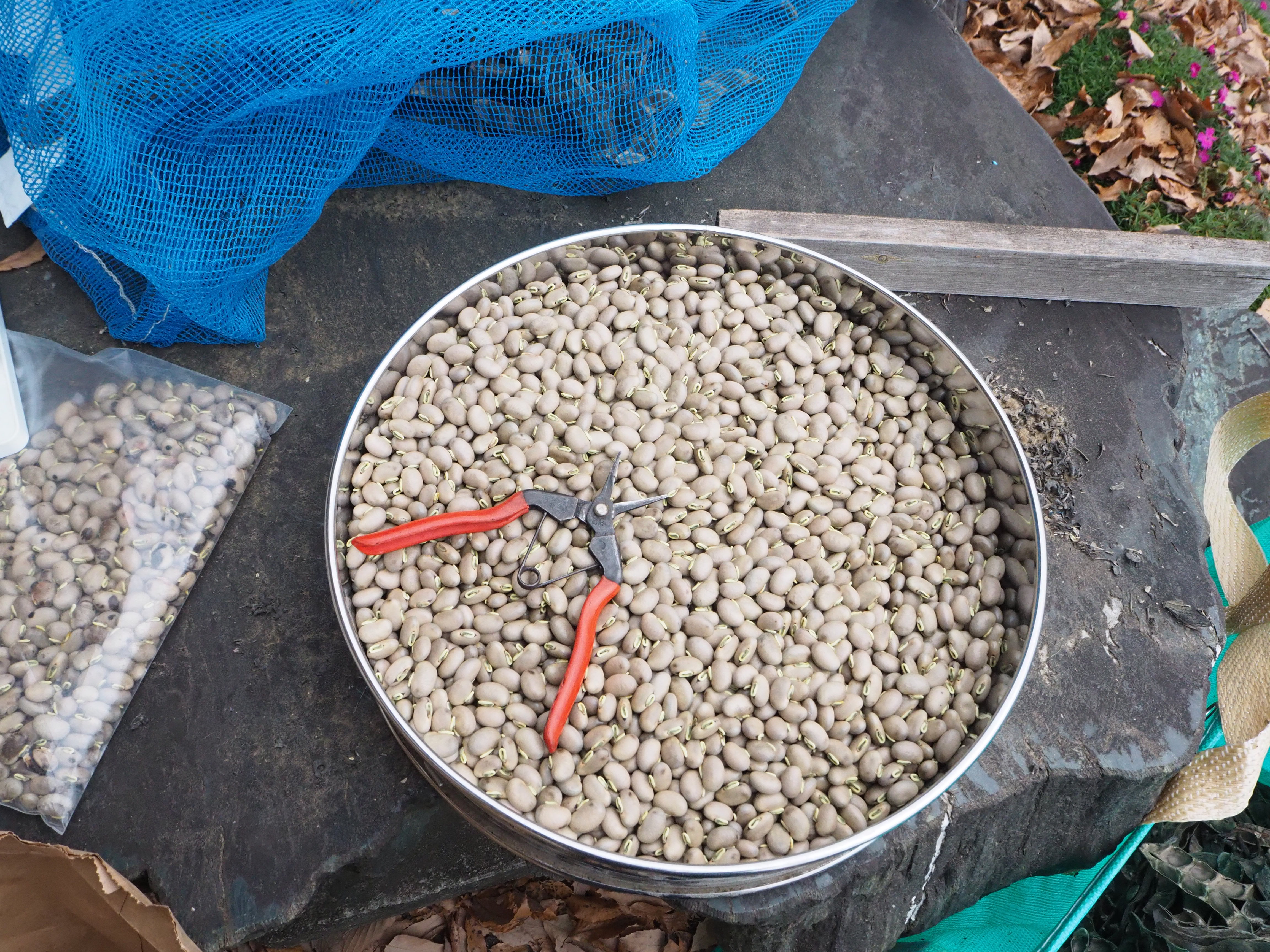 すでに協力農家さんからは、八升豆10㎏の納品がありましたが、選別も品質も申し分ない状態でした。生豆の在庫が無く、欠品状態なのでネットに収めた30袋分の乾燥豆の取り出し作業に入ります。